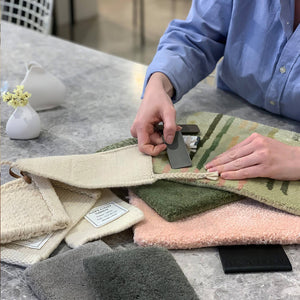 ASPLUNDs handvävda och handtuftade mattor tillverkas i en blandning av ull och Tencel® för att vara hållbara och högkvalitativa.