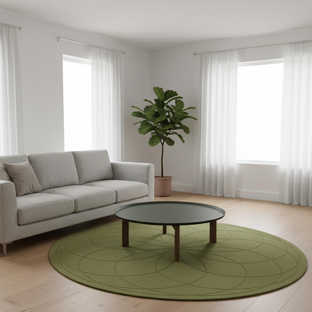 Lotus är en rund handtuftad matta med ett lotus mönster som är klippt för hand designad av Broberg & Ridderstråle för ASPLUND Carpets. Mattan är tillverkad i 100% nyzeeländsk ull som är rik på naturliga fetter och ger mattan en naturlig lyster samtidigt som den ger ett bra skydd mot fläckar.