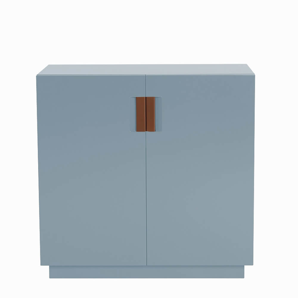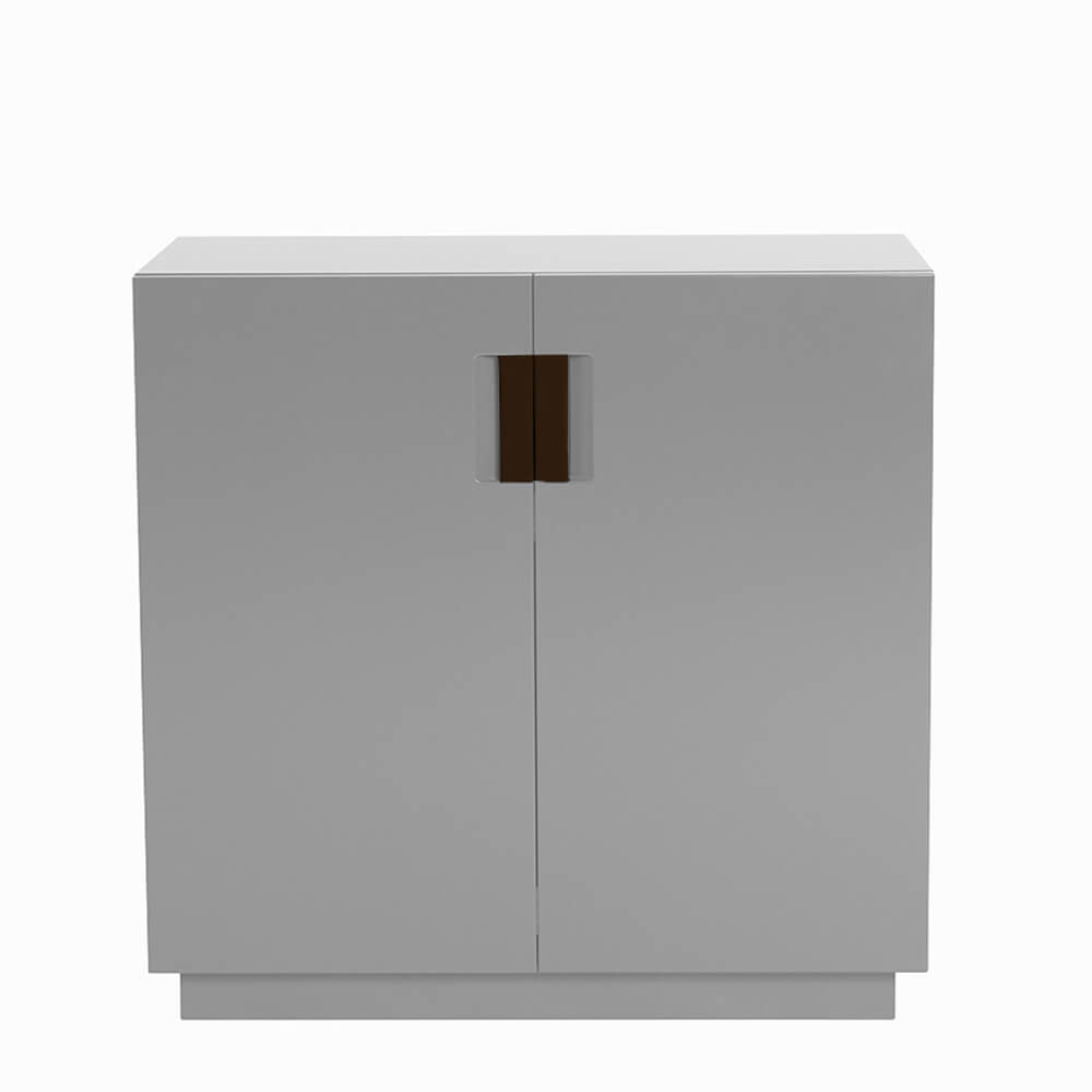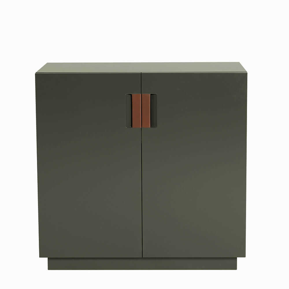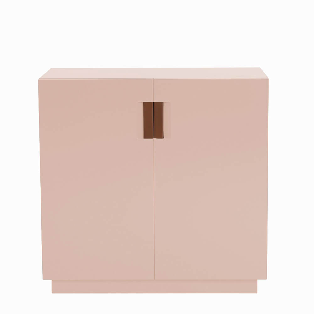 Frame 80 Low är en liten skänk formgiven av designerduon Anya Sebton och Eva Lilja Löwenhielm för ASPLUND Collection. Tillverkad i lackerad MDF med fällbara dörrar i glas och handtag i tvinnat naturläder. En lackad hylla inuti. Tillverkas i Sverige.