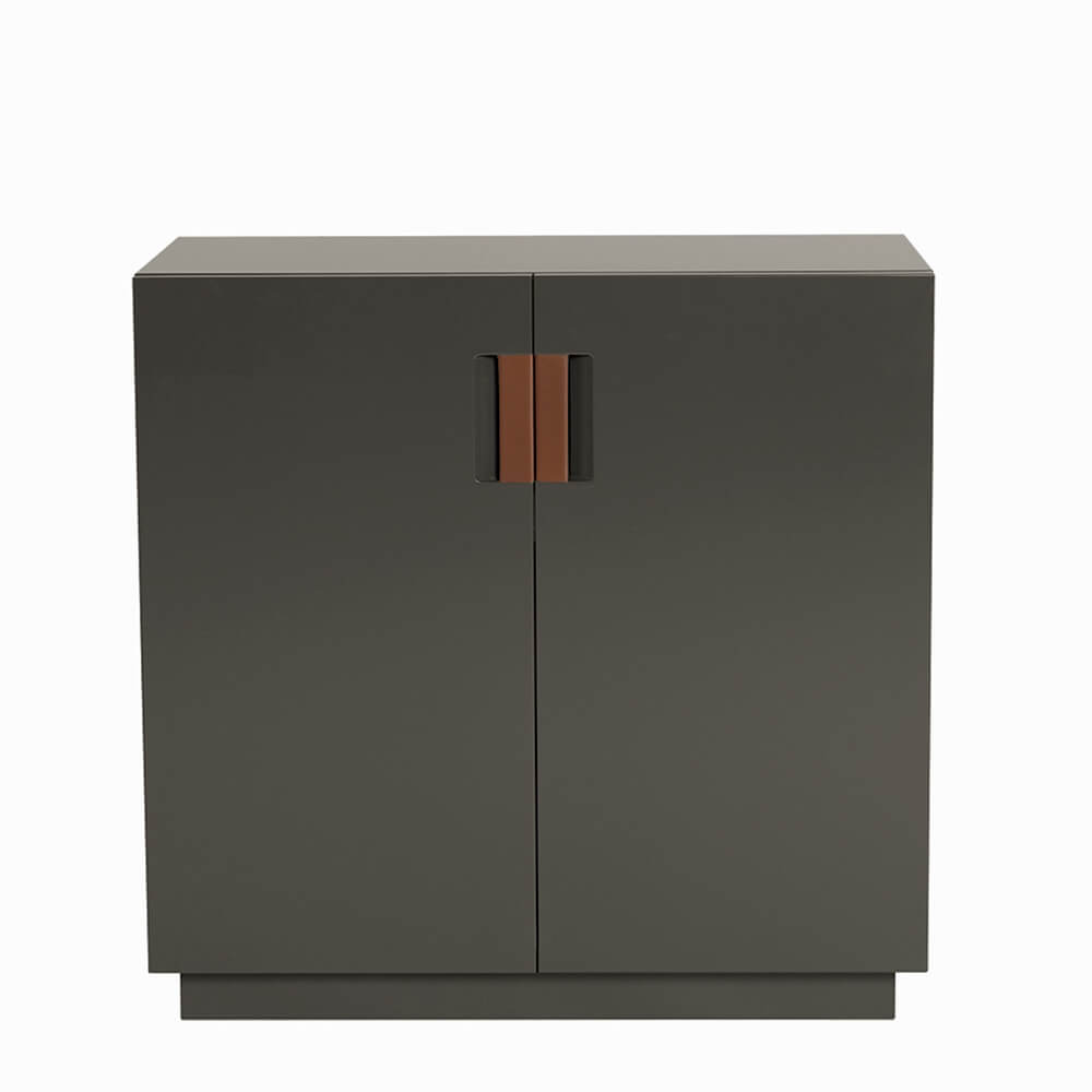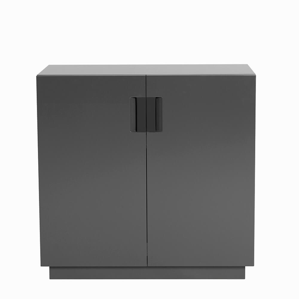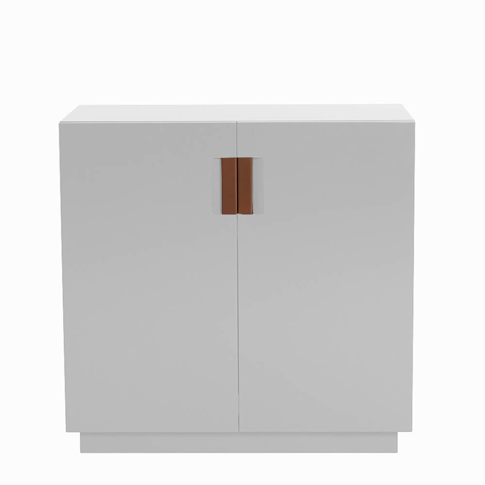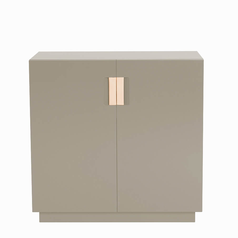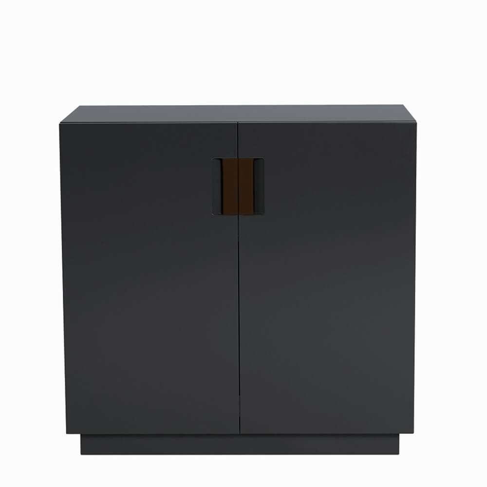 Frame 80 Low är en liten skänk formgiven av designerduon Anya Sebton och Eva Lilja Löwenhielm för ASPLUND Collection. Tillverkad i lackerad MDF med fällbara dörrar i glas och handtag i tvinnat naturläder. En lackad hylla inuti. Tillverkas i Sverige.