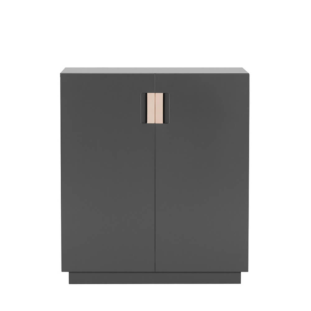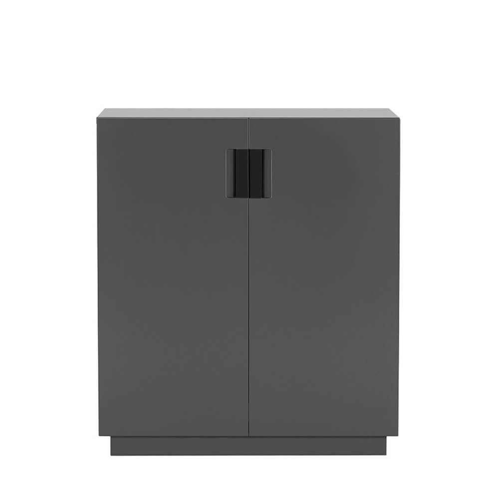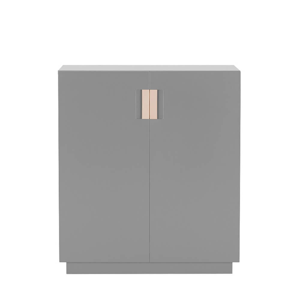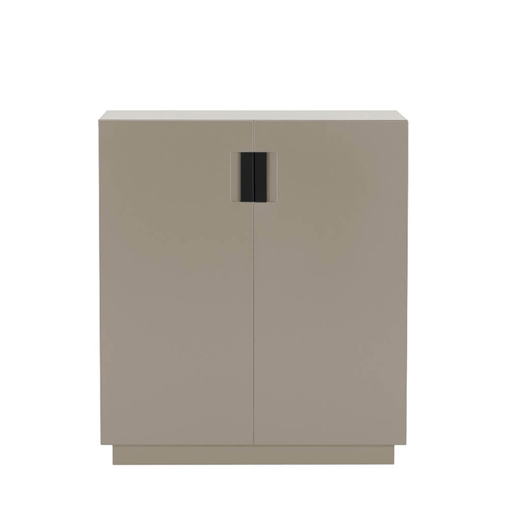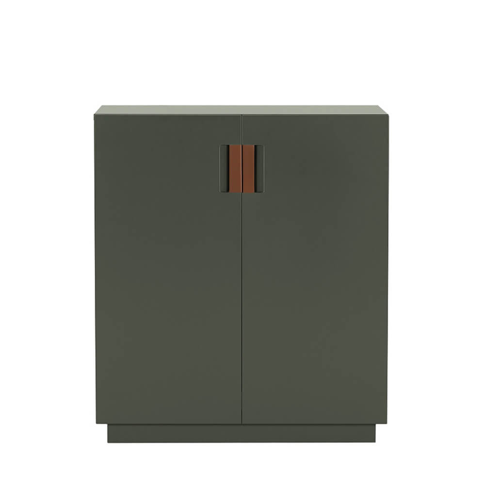 Frame 80 Medium är ett elegant förvaringsskåp formgivet av Anya Sebton och Eva Lilja Löwenhielm för ASPLUND Collection. Skåpet är tillverkat i lackerad MDF med fällbara dörrar och handtag i tvinnat naturläder. Två lackade hyllor ingår. Tillverkas i Sverige.