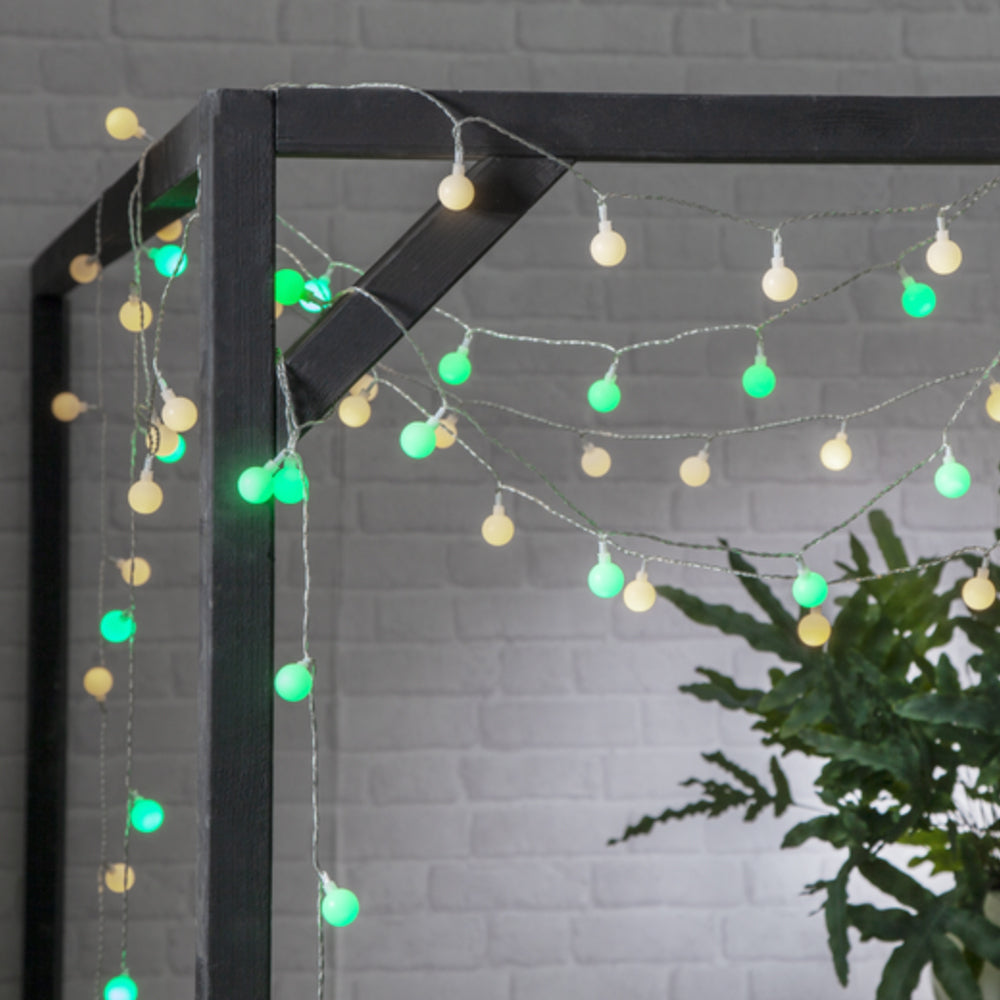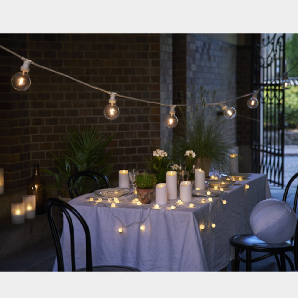 Berry är en ljusslinga med 50 varmvita LED-ljuskällor för utomhusbruk. Perfekt för att dekorera trädgården, altanen eller balkongen i juletider. Bubbeleffekten i höljena ger ett härligt sken. Avståndet mellan lamporna är 15 cm och slingan är 7,35 meter lång med transparent kabel.