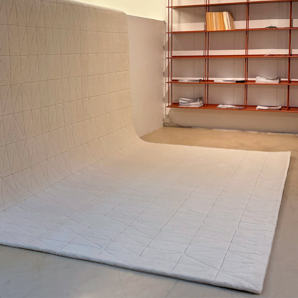 Wedge 2 Origami är en handtuftad matta med handklippt mönster designad av Marie-Louise Hellgren för ASPLUND Collection, 2018. Mattan är gjord i 100% fin ull. Vi tycker Wedge 2 Origami är den perfekta sovrumsmattan!