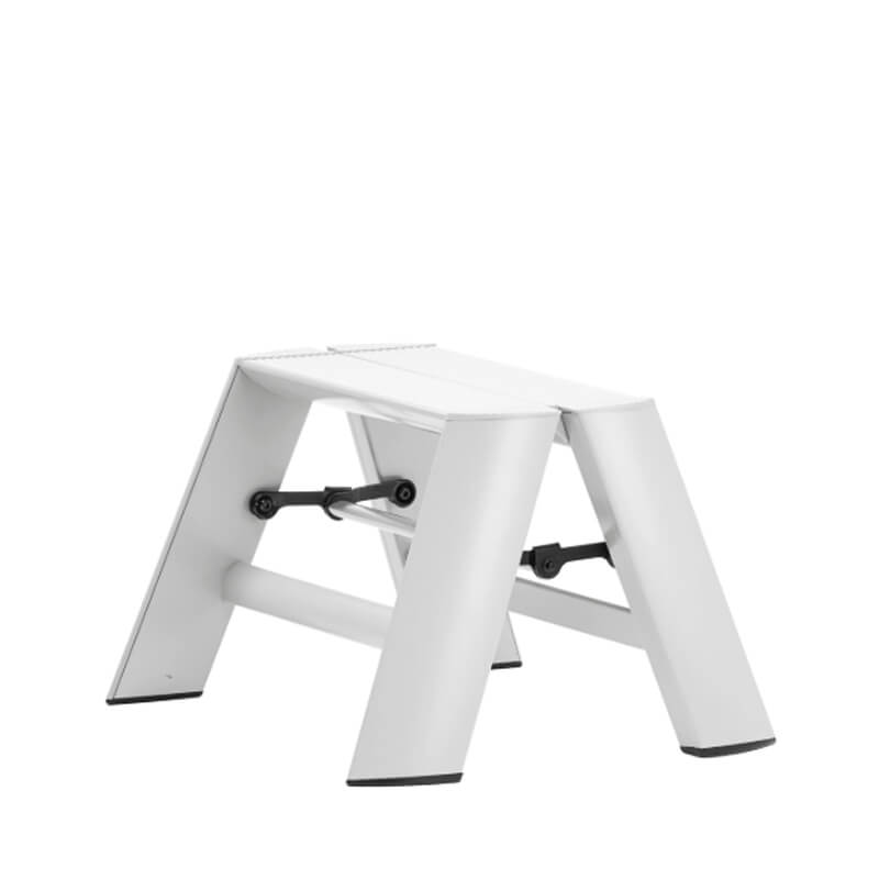 Tillverkad i lätt aluminium med steg i halkskyddad yta och ett elegant handtag som gör den stabil och trygg att använda. När den inte behövs, fälls den ihop med ett lätt handgrepp och står stadigt även hopfälld – vilket gör att du inte behöver gömma undan den i ett förråd.