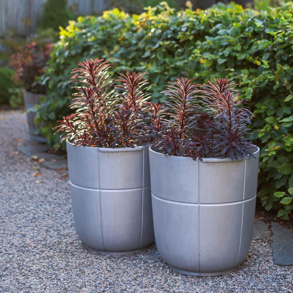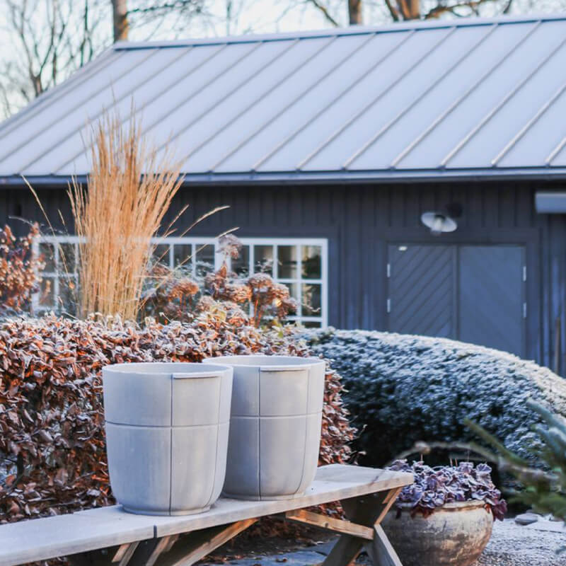 Designen reducerar och stiliserar korgens rutmönster och tar fram en form som på samma gång uttrycker släktskap med Korbo-korgen, samtidigt som designen bildar ett eget och nytt uttryck. Sandgjuten aluminium är ett idealiskt material att arbeta med när det gäller krukor för utomhusbruk. De tål frost och kalla vintrar, är enkla att rengöra och håller sig fina år efter år.